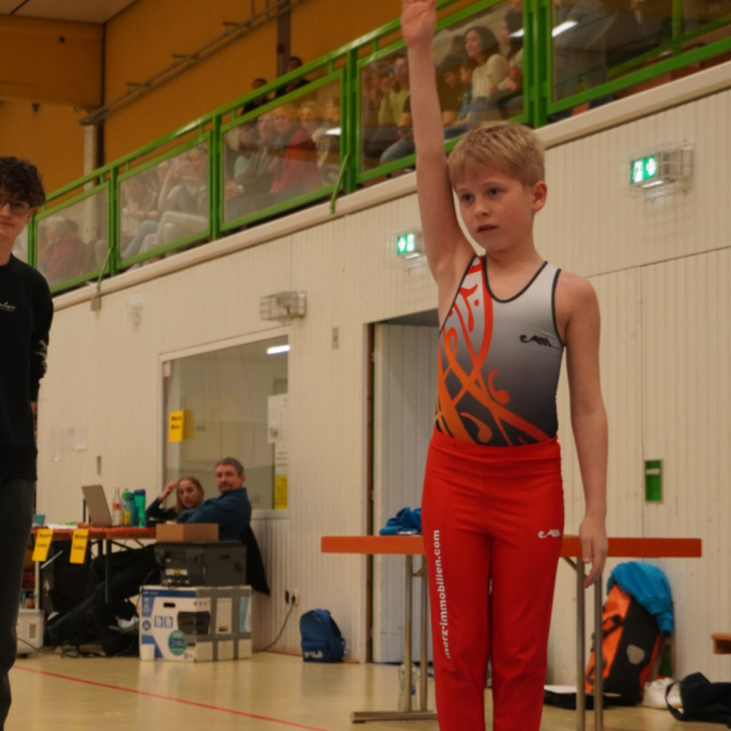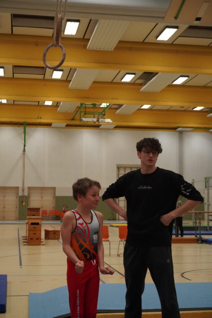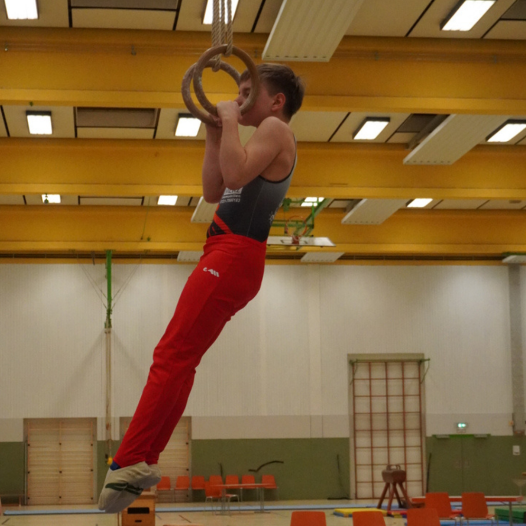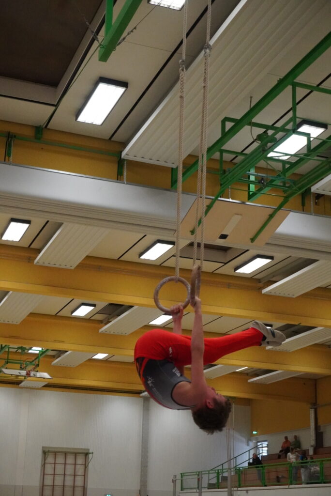Wie man die Turnpanthers kennt, standen alle fünf Jungs zusammen und ließen sich davon nicht einschüchtern. Es war auch seitens der Trainer viel Feingefühl und langjährige Erfahrung gefragt, da Jonas am Fuß durch eine gezerrte Sehne und Alexander durch eine Muskelverhärtung am Rücken geschwächt waren. Die ersten drei Geräte waren Ringe, Boden und Sprung. Der Boden lief ganz gut und Christian zeigte einen super Einstieg in den Wettkampf. Mit einer sehr guten Körperspannung in seiner Übung erhielt er im Team die höchste Punktzahl :13,6 von möglichen 15,0 Punkten. Am Sprung konnte Jonas trotz Verletzung am Fuß mit einer sehr guten Sprunghocke überzeugen und somit auf einen zweiten Sprung verzichten. An den Ringen setzte Niki ein deutliches Zeichen und wurde auch mit 14,6 Punkten von möglichen 15,0 Punkten dafür belohnt. Somit lag man nach den ersten drei Geräten zwar auf Platz 2, doch der Vorsprung war nicht allzu groß.